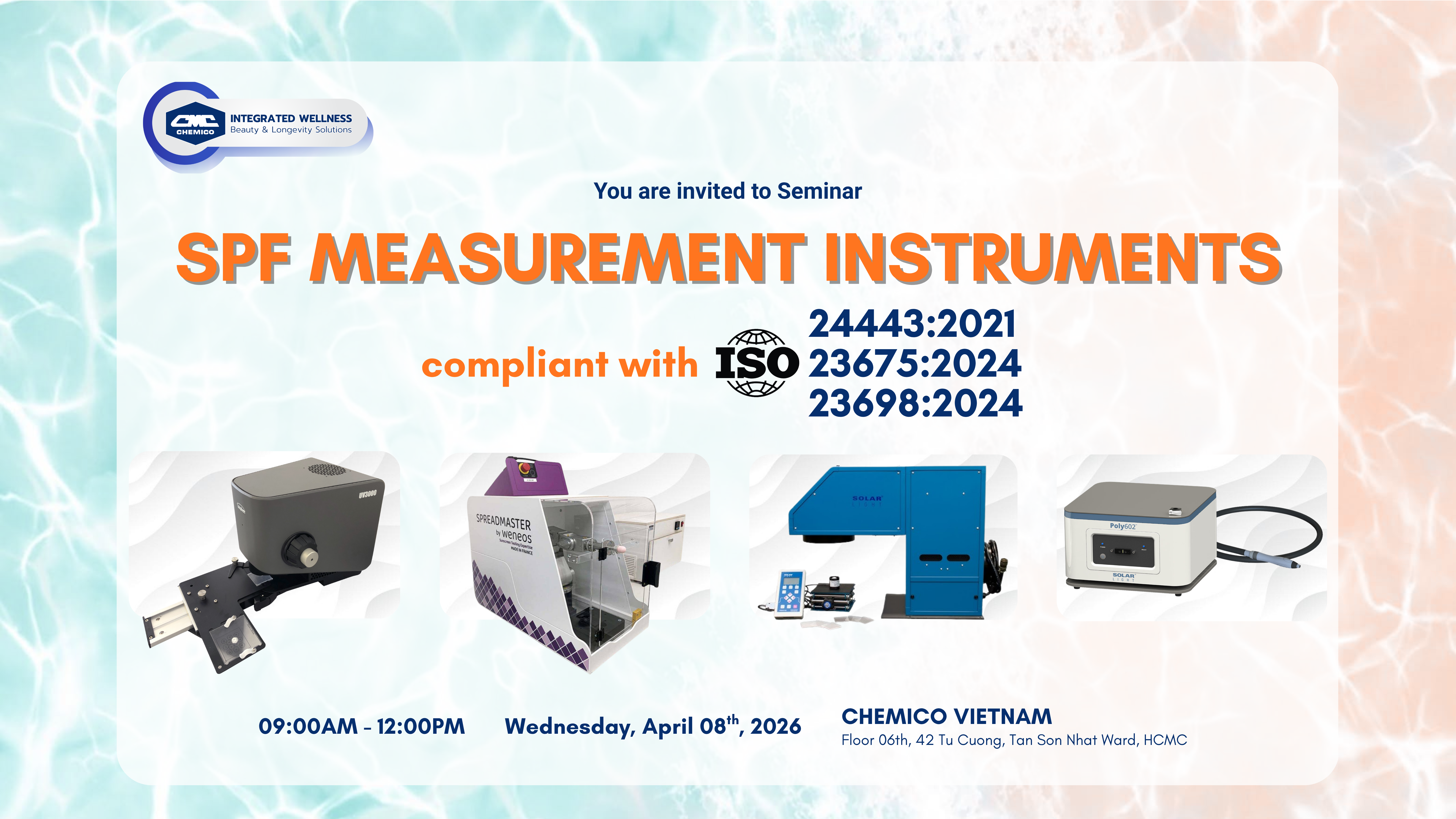 On April 08th, 2026, Chemico Vietnam Co., Ltd. held the seminar entitled “SPF Measurement Instrument compliant with ISO 24443:2021, 23675:2024, 23698:2024”. This is our very first and valuable seminar focusing on introducing advanced SPF measurements for sunscreen products, along with the latest updates on ISO standards for sun protection evaluation.