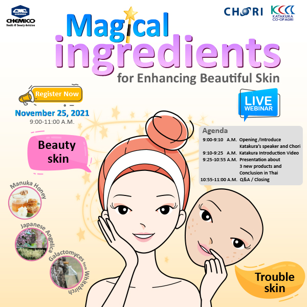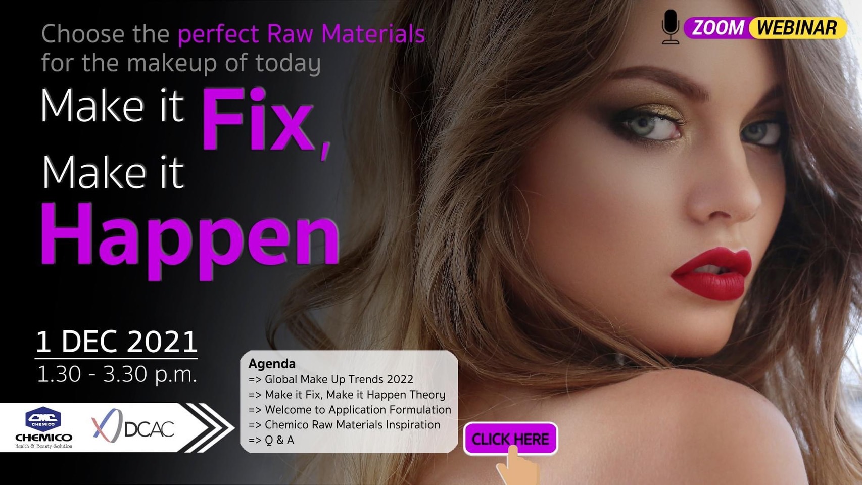 DCAC center, a member of Chemico group organized a makeup webinar for Thai customers entitled “Make it Fix, Make it Happen” on December 1, 2021. The seminar covered the topics as follows: Global makeup trend 2022, Make it Fix, Make it Happen theory,.....
