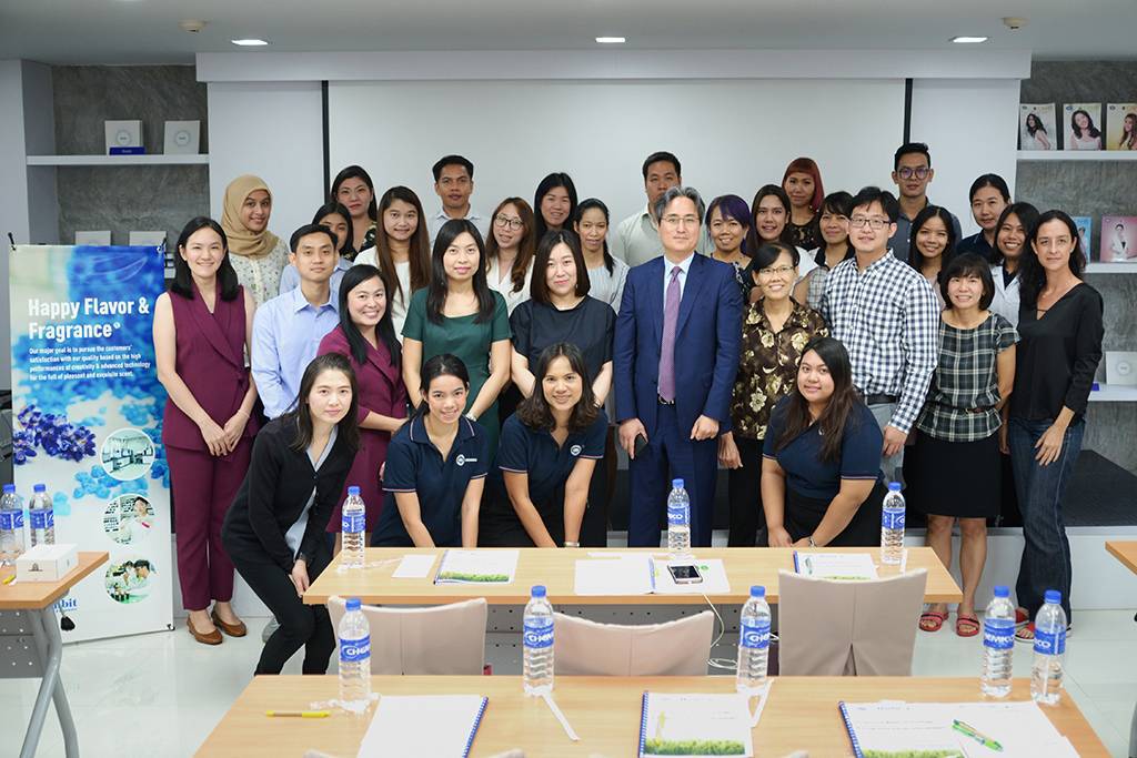 Hanbit Flavor and Fragrance Co., Ltd., Korea and Chemico Inter Corporation Co., Ltd. held a seminar on April 4, 2019 at CAHBII center, Thailand with the topic “Fragrance Basic Technology & Fragrance Trends with HANBIT”. The seminar presented fragrance basic technology, fragrance regulations, recent issues on fragrance industry and global & Korean cosmetic trends 2019. We also had the opportunity to test and evaluate our fragrance samples in a cream base.