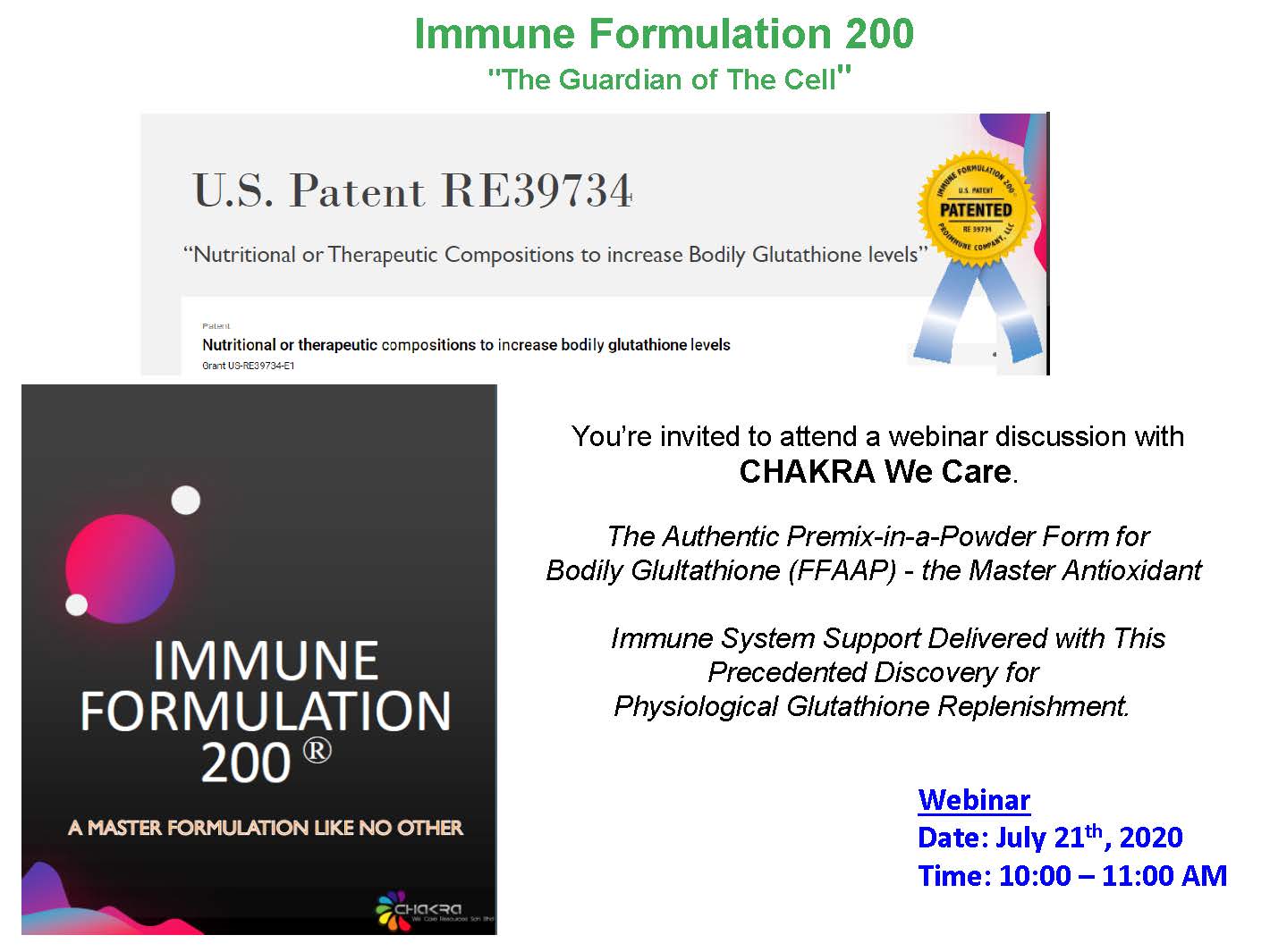 Chakra We Care Resources Sdn Bhd, Malaysia in collaboration with Chemico Inter Corporation Co., Ltd. jointly organized a webinar entitled “Immune Formulation 200® (The Guardian of the Cell)” on July 21, 2020. The webinar provided glutathione& its importance, Immune Formulation 200®, comparison between Immune Formulation 200® and other glutathione products, research studies and market products which can help in the development of new products in food and dietary supplement.