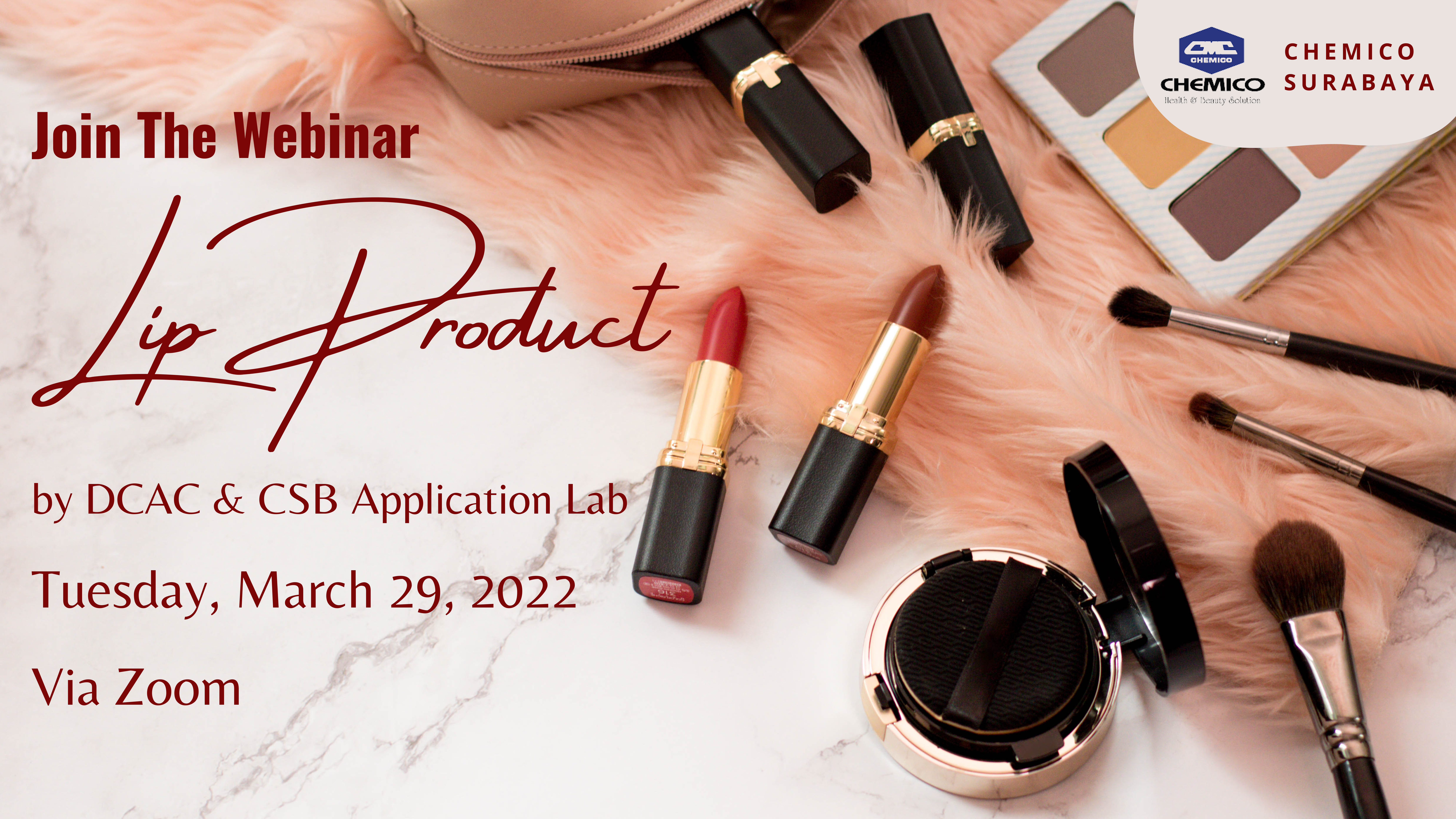 DCAC Center, a member of Chemico group in collaboration with PT. Chemico Surabaya, Surabaya Indonesia held a webinar for the first quarter of this year on March 29, 2022 under the topic “How to formulate lip products”. Main components, common problems, examples of formulations and video clip showed the application of these formulations as well as the related ingredients were also included.
