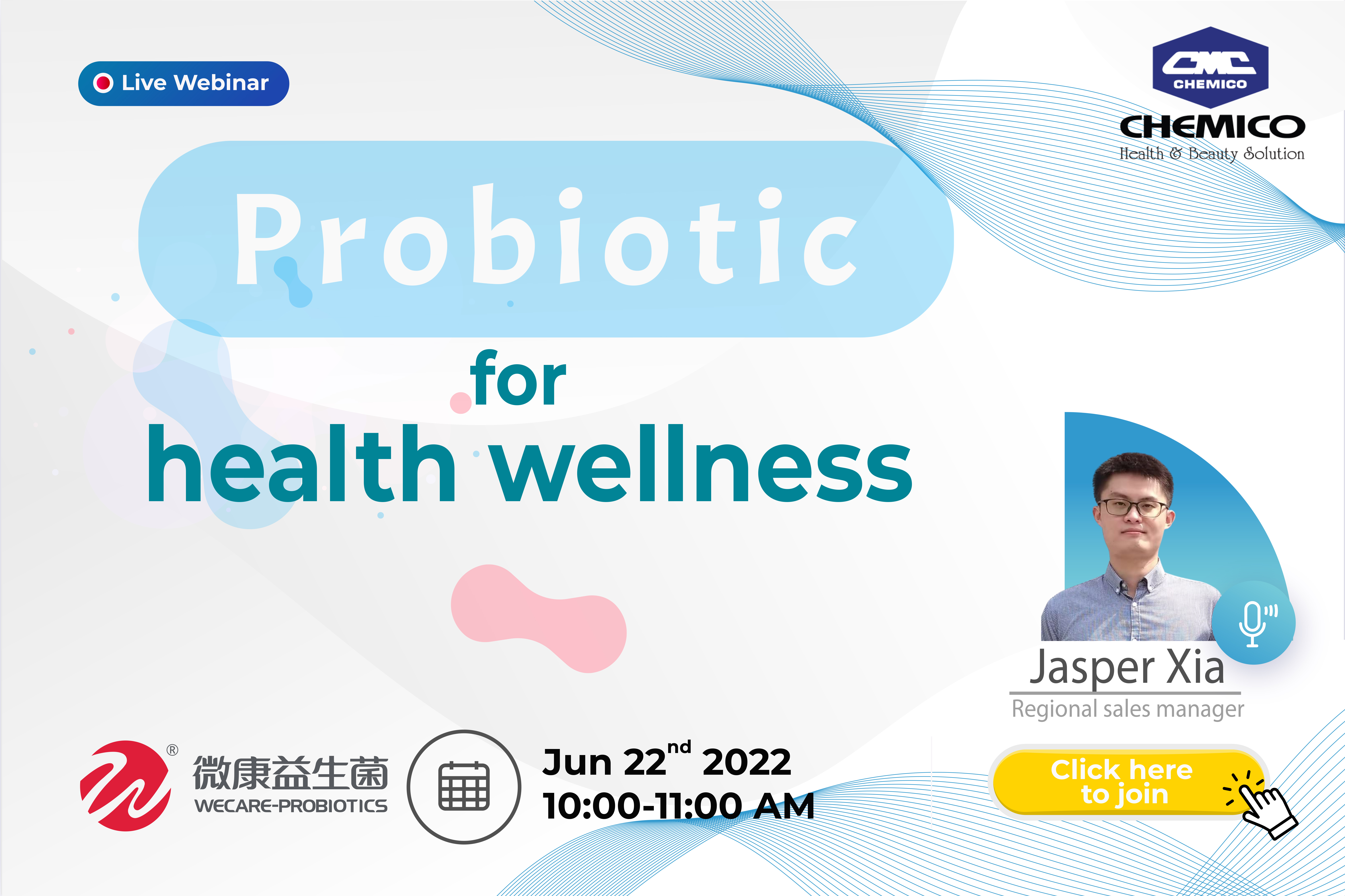 Wecare Probiotics Co., Ltd., China in collaboration with Chemico Inter Corporation Co., Ltd. held a webinar entitled “Probiotic for Health Wellness” on June 22nd, 2022. The webinar provided probiotic trends,  information of some probiotic strains with their scientific and clinical data and market product examples. The information is very useful in the development of new products in the field of dietary supplement, beverage, bakery, confectionery, energy bar, tablet, etc.