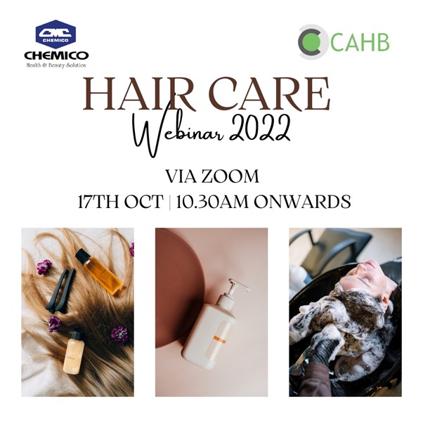 Chemico Asia Health Beauty (CAHB) Center together with Chemico Asia Pacific (M) Sdn. Bhd., Malaysia held a webinar entitled “Hair Care Webinar 2022” on October 17th, 2022. The main topic of webinar were the latest Hair Care market trends and formulations related to the trends. Protype samples will be courier out to the customers upon request.