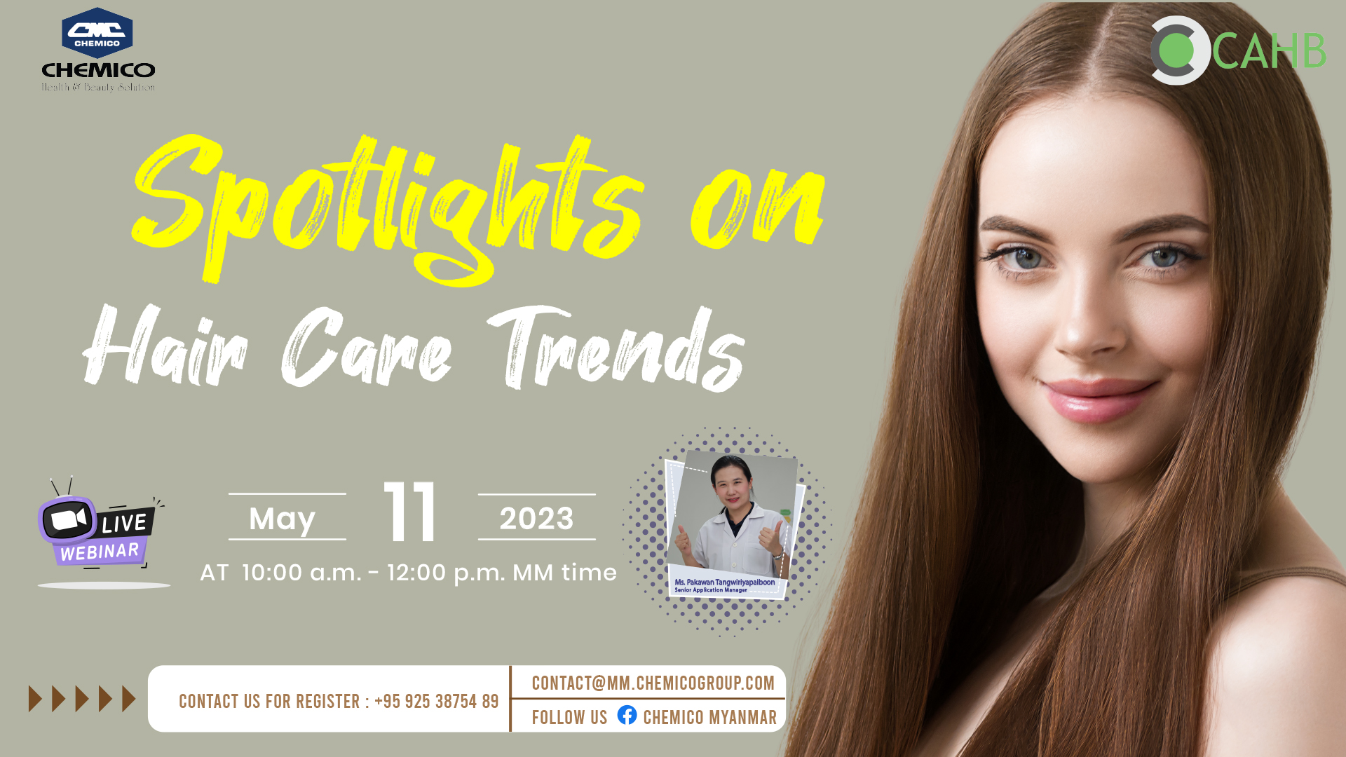 Chemico Myanmar Co., Ltd. In collaboration with Chemico Asia Health and Beauty (CAHB) Center organized a webinar entitled “Spotlights on Hair Care Trends ” on May 11th, 2023. The webinar presented hair care trends, formulations and raw materials related to the trends.