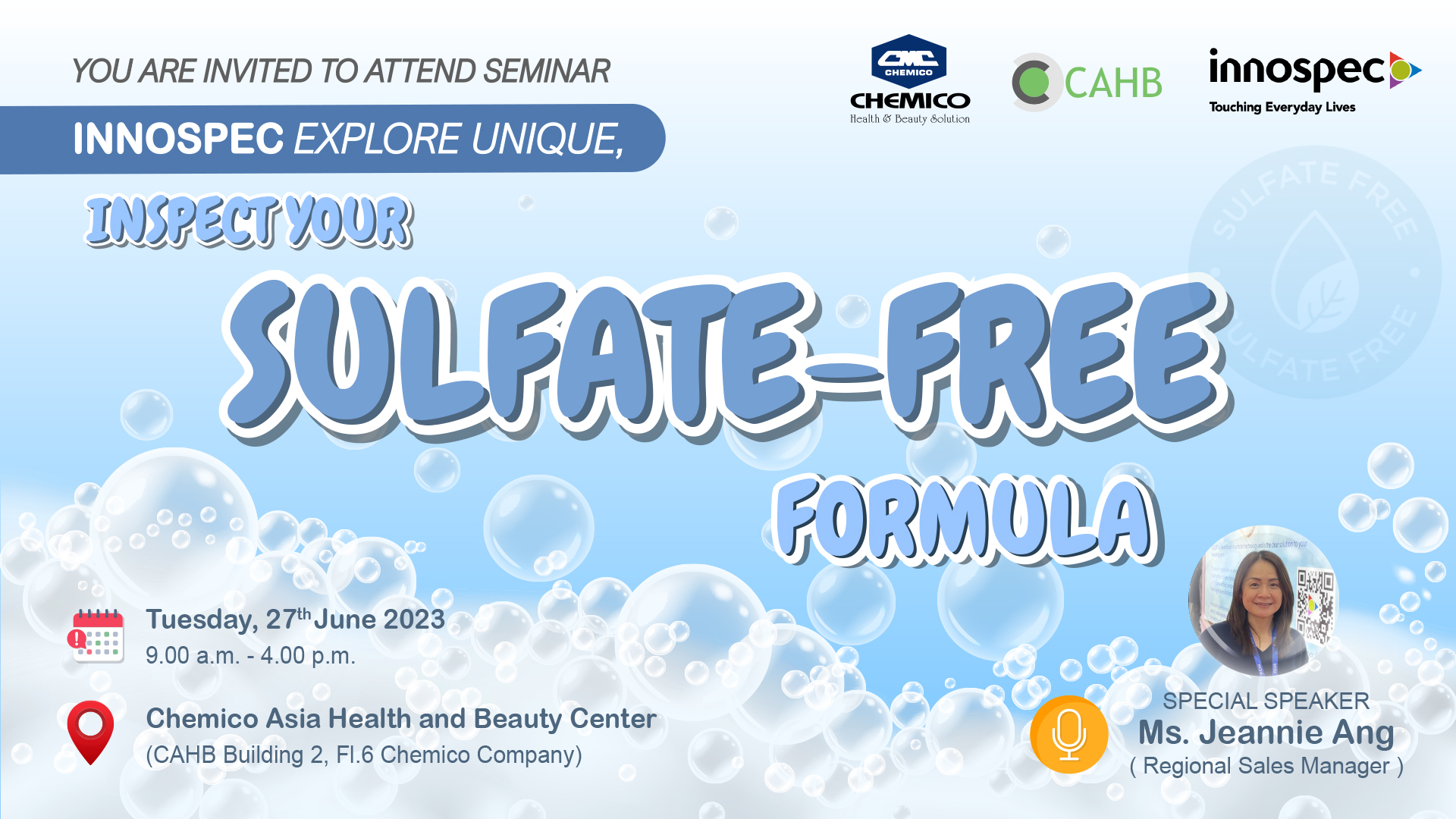Innospec Inc. in collaboration with Chemico Inter Corporation Co., Ltd. held a seminar and workshop on June 27th, 2023 under the title “Innospec Explore Unique, Inspect Your Sulfate-Free Formula”. This seminar is to introduce global macro and micro trends, surfactants for sulfate-free products including new product launched as well as formulations for each trends. During the seminar, customers could try market samples, sustainable formulations and making formulations related to the trends. Instruments for hair care efficacy testing were demonstrated as well.