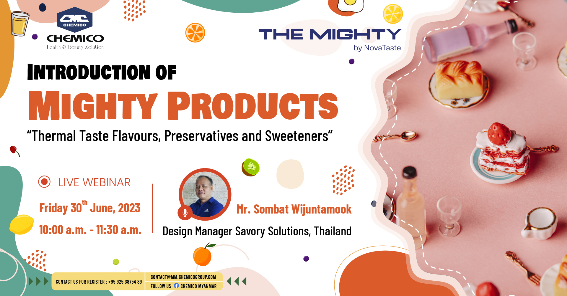 The Mighty Co., Ltd., Thailand in collaboration with Chemico Myanmar Co., Ltd. organized a webinar entitled “Introduction of Mighty Products” on June 30th, 2023. The information about Thermal taste flavors, Preservatives and Sweeteners was presented during the webinar.