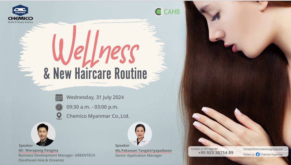 Greentech S.A. in collaboration with Chemico Myanmar Co., Ltd. organized an interesting seminar on July 31st, 2024 at Chemico Myanmar Application center. The topic was “Wellness and New Haircare Routine”. The seminar included Global Wellness and Haircare Trends, Greentech’s Hair Active Products and Formulations as well as the Related Raw Material Information. After the presentations, the customers have a chance to do lab workshop as well.