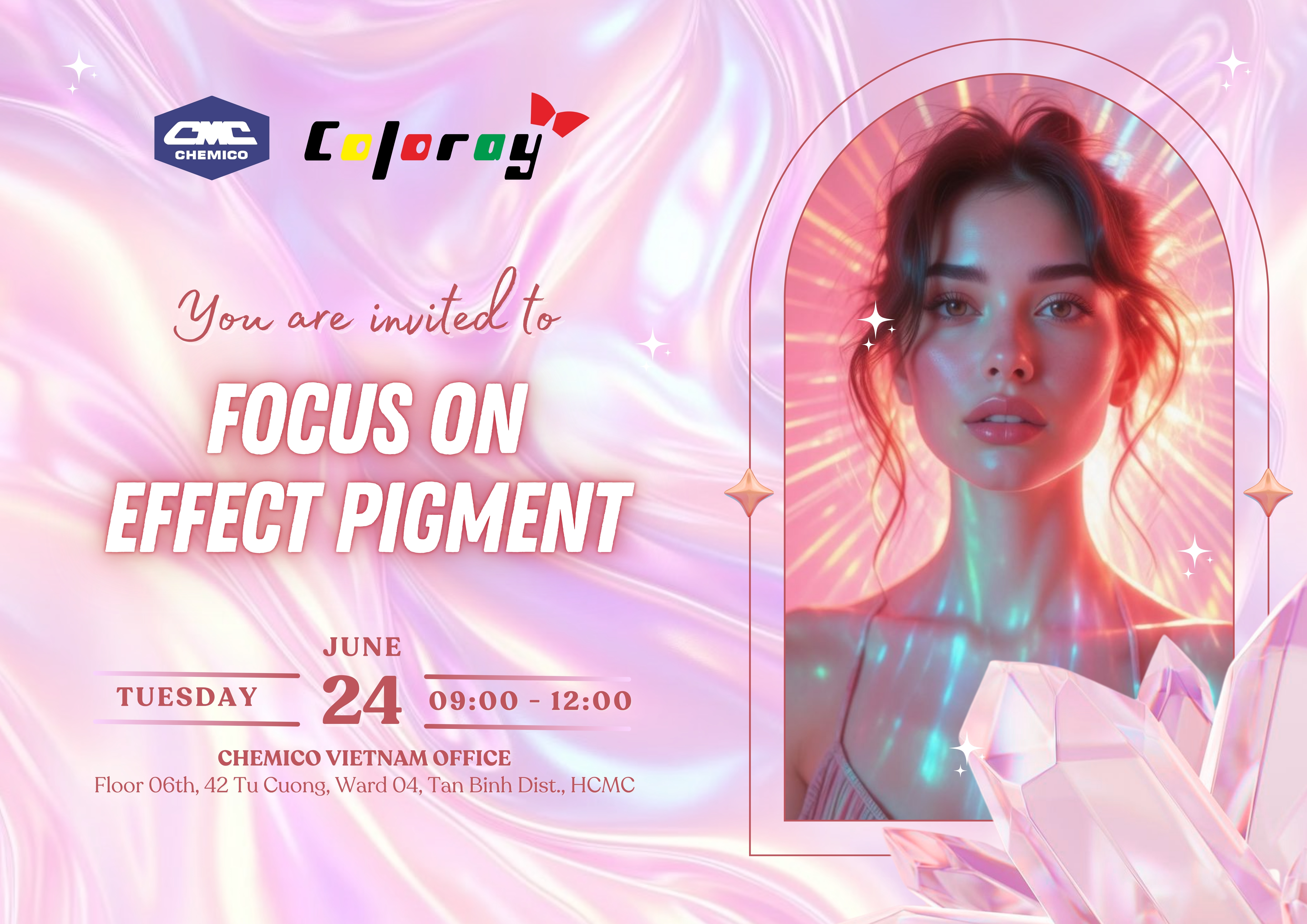 Zhejiang Coloray Technology Development Co., Ltd. in collaboration with Chemico Vietnam Co., Ltd. held a half day seminar on June 24th, 2025. The topic was “Focus on Effect Pigment”. “Twinkle, sparkling, glister,…” were the main concepts aimed to introduce to all participants when they tried the color palettes. The attendees also have a chance to learn about the pigment solutions for makeup products and try the prototypes developed by Chemico Vietnam Application team.